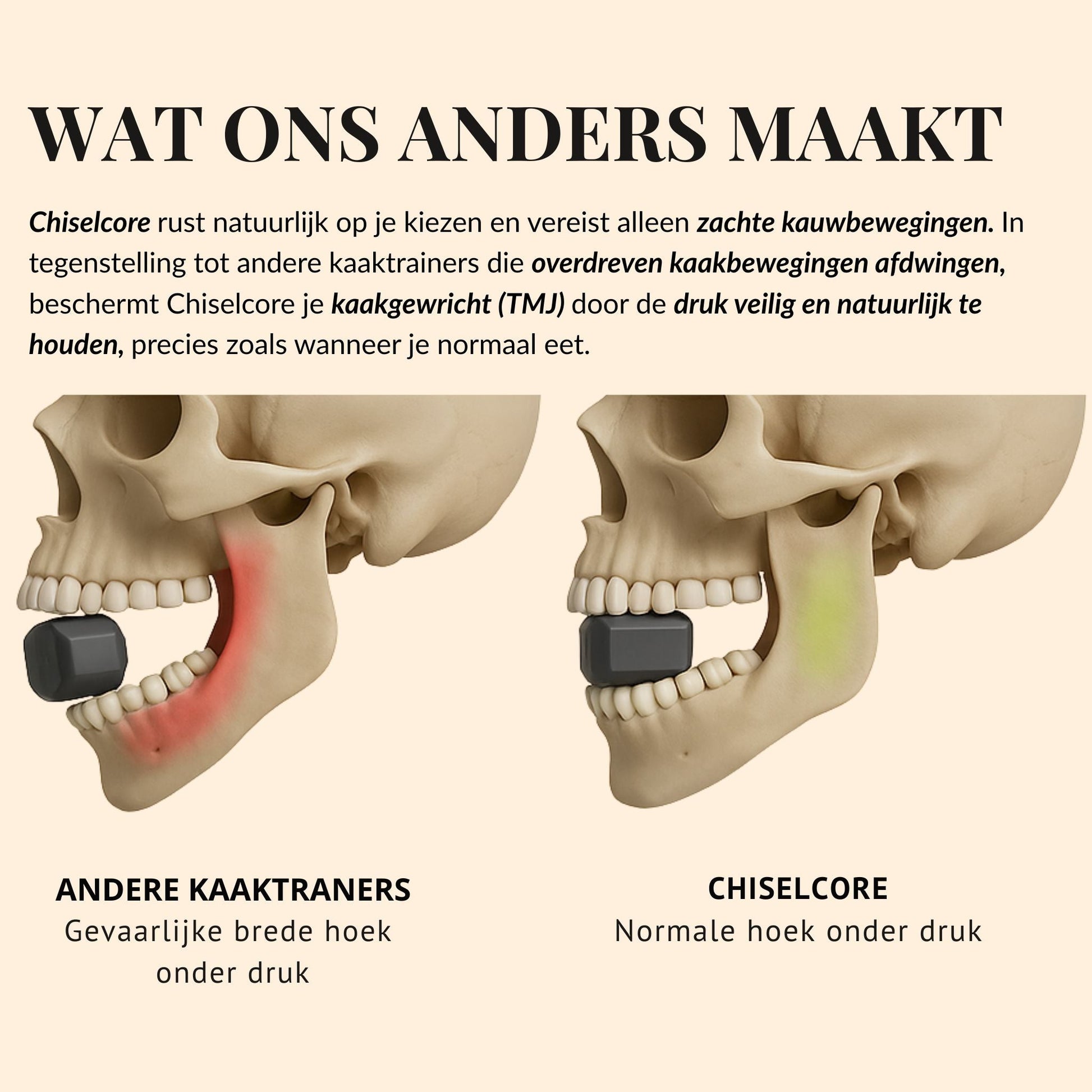 💪 Versterkt de juiste spieren zonder belasting op tanden